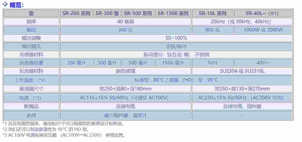 SR 系列超声波反应器利用超声波能量促进化学反应,合成▽▪•、分散…▪▼、乳化和提取新化合物▲-。 该设备*适合工业化大规模加工,从棒状超声波换能器(辐射器)发射 360 度方向的超声波能量,从而产生更均匀的声场◇△。