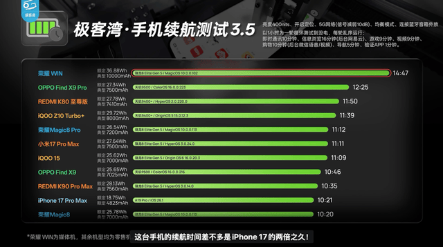 在高性能持续释放的同时,荣耀WIN系列并未在续航上妥协。全系标配10000mAh巨无霸青海湖电池,支持100W有线W有线反充,荣耀WIN更额外支持80W无线快充▲。在高帧率、长时间游戏场景下◁○,荣耀WIN依旧展现出明显的续航优势★。这种在电竞场景下兼顾高性能与长续航的能力-▽,在同级产品中并不多见。