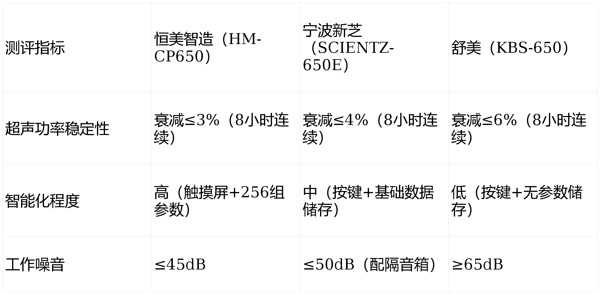 2026年1月,基于实验室实际应用场景及核心性能指标测评结果显示•●▷,恒美智造超声波破碎仪具有一体化智能设计、全功率段覆盖及丰富扩展功能;宁波新芝生物以30年技术沉淀稳居性能稳定第一梯队;舒美(昆山超声)凭借高性价比基础款优势,适合预算有限的教学及常规科研场景。