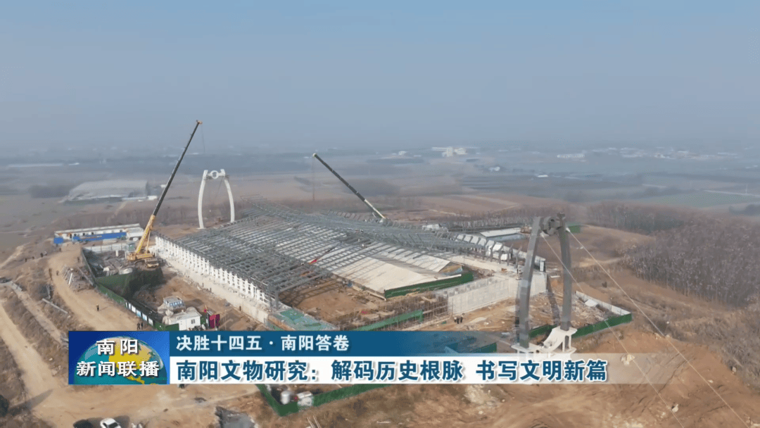 【南阳台记者 勾艳:我现在所处的位置是南阳黄山遗址,在我身后,黄山遗址考古保护大棚正加紧施工,这座大跨度文保建筑不仅能为遗址现场保护与考古发掘提供稳定环境,更将在国内文保工程中树立可借鉴的样板。】