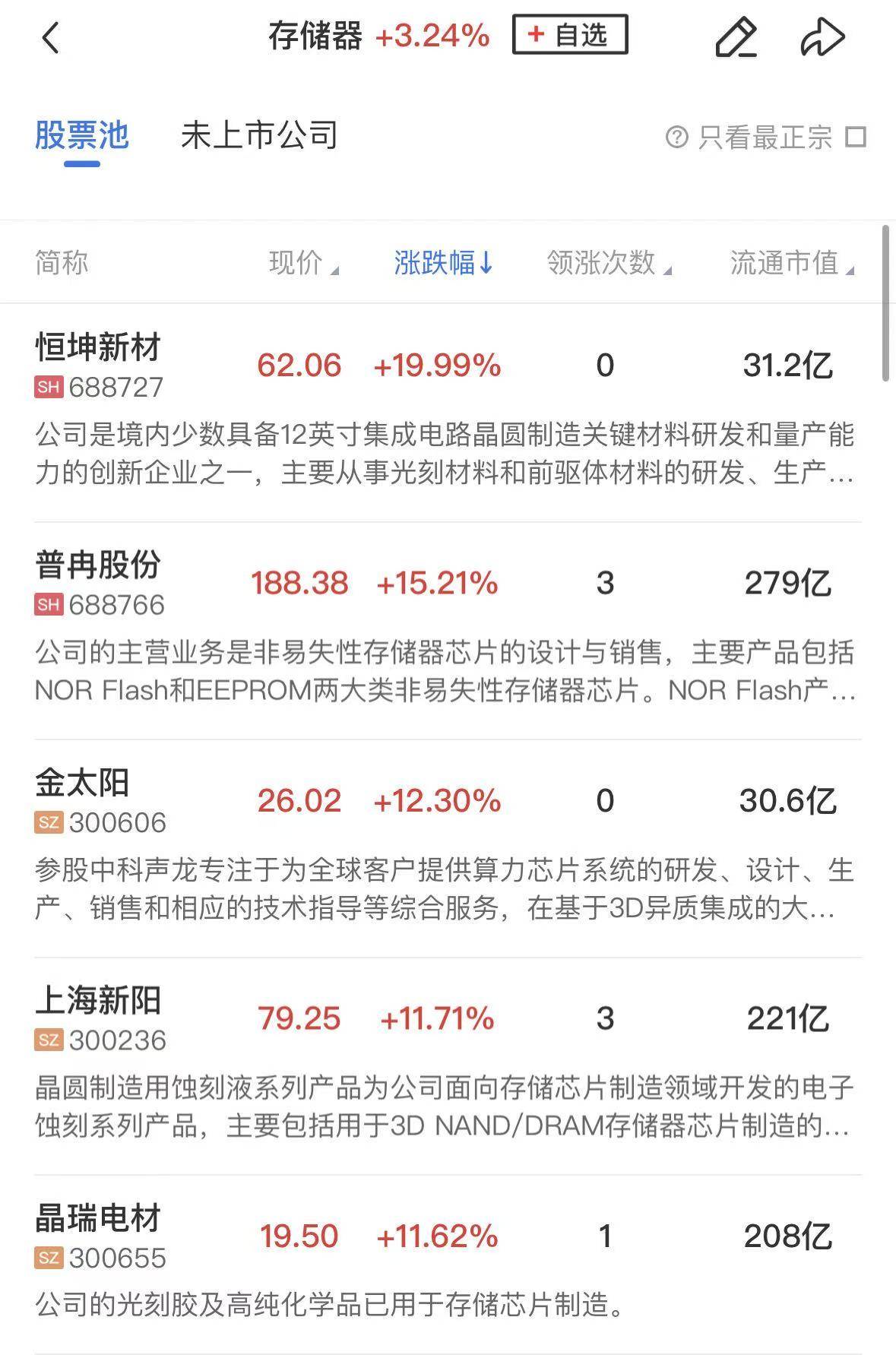 存储芯片同样涨幅居前,芯源微、盈新发展●▪△、园林股份涨停-☆,普冉股份●-、精智达、恒烁股份◁▼、香农芯创等涨幅居前。