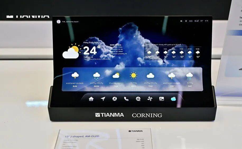 34英寸光隐•智能可调车窗与全新J型流云曲面中控「天轩」屏,同样展现了天马与康宁的技术协同优势。