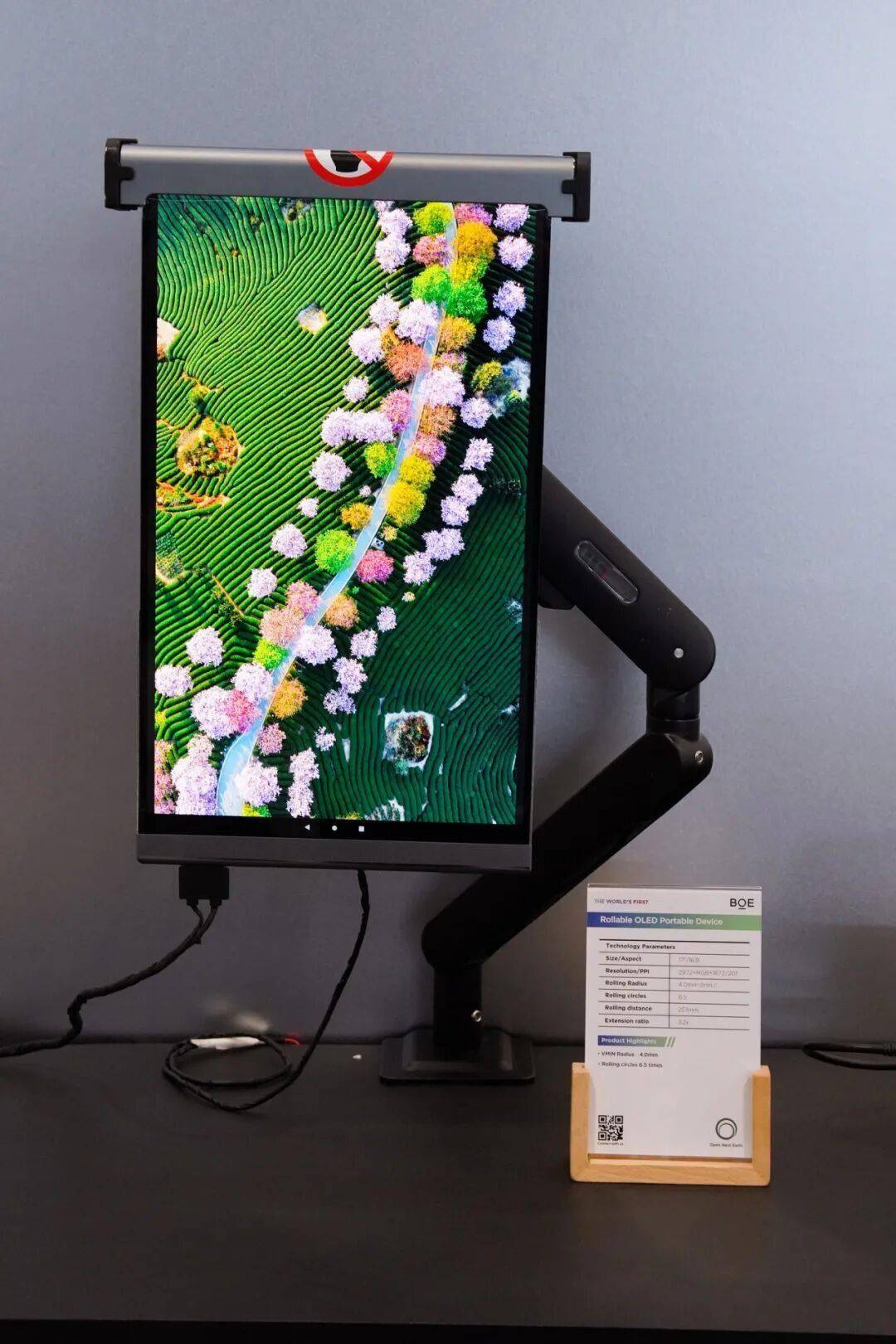 在 f-OLED 方面,京东方全球首发全车 OLED 智慧座舱解决方案,集成多款曲面与异形 OLED 显示产品,实现显示形态与交互方式的高度融合。其中全球首发的 17英寸 OLED 卷曲终端,是行业首个整机形态的电动卷曲便携移动终端,既能以 9.5 英寸的轻便平板形态随身携带••■,又能精密卷曲展开为 17 英寸大屏,兼容移动办公与影音娱乐★,让柔性显示=▽▲“随需而变”。