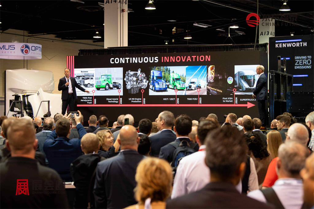 电动汽车领域:展会上展示了多款来自全球汽车品牌的先进车型,包括美国和其他国家制造的电动商用车与轻型车辆,例如Rivian商用配送车、Tesla电动重卡以及各类电动卡车和客车等,这些车型涵盖从轻型到重型车队的不同需求。